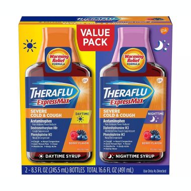 Amazon Com Theraflu Expressmax Severe Cold And Cough 8 3 Oz Syrup Plus Theraflu Multi Symptom Severe Cold 6 Ct Powder Health Household